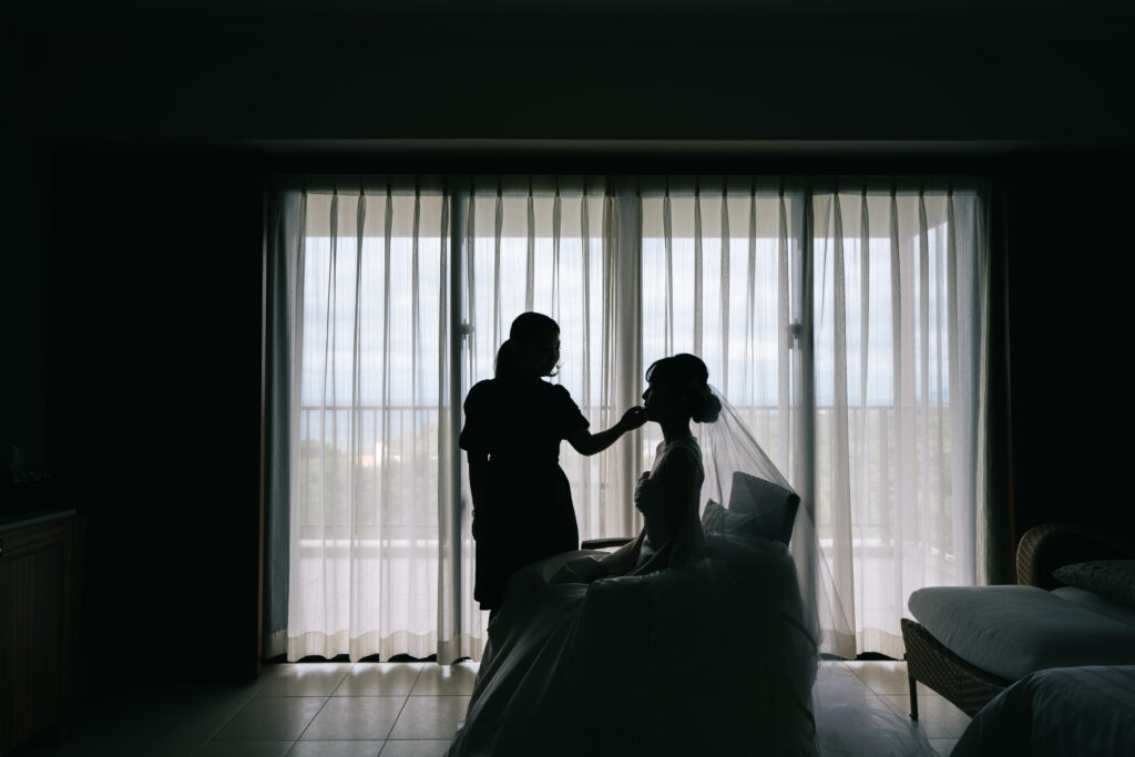 スタッフがサロンでお待ちしております。一日の流れをご説明して、早速ヘアメイクへ!
