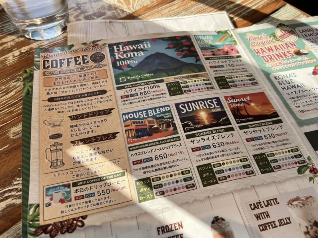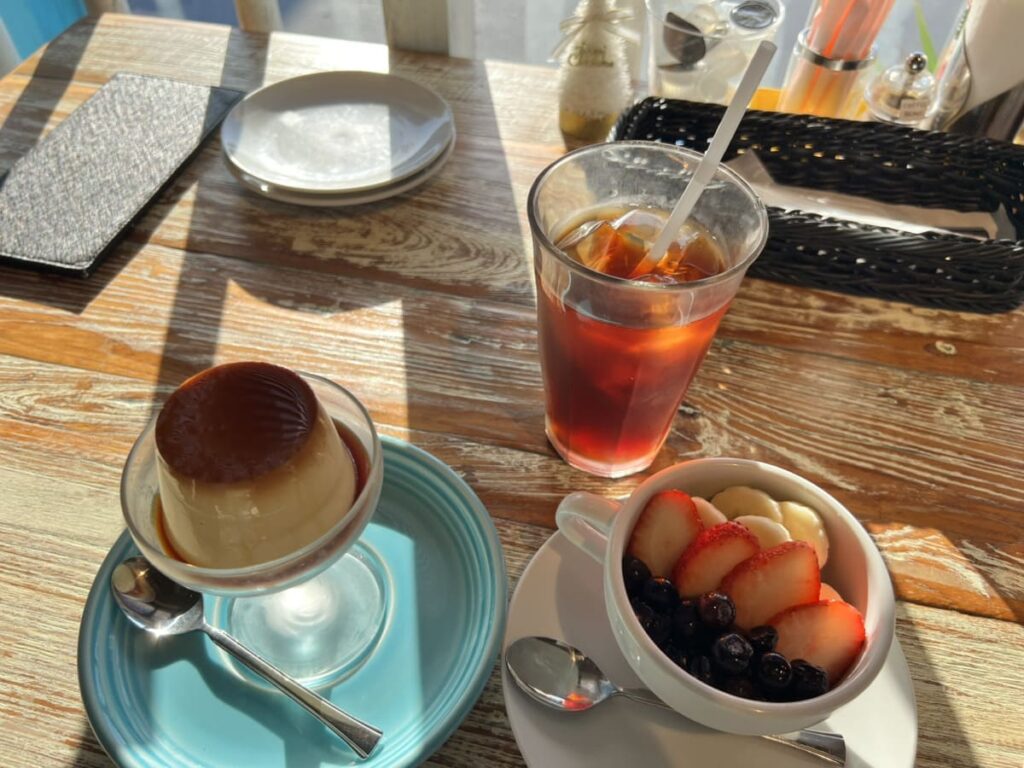 カフェに立ち寄り、コーヒーやアサイーボール、プリン(合計 2,500円)を楽しみました。