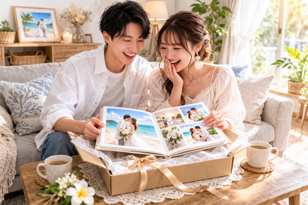 撮影の日の会話、ドレスを選んだときのこと、二人で笑い合った瞬間…。写真を見ながら、大切な思い出を語り合う時間は、これからの二人の絆をさらに深めてくれるはずです。